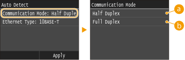 tap <Half Duplex> or <Full Duplex>.![]() <Half Duplex>Alternately sends and receives communication data. Select when the machine is connected to a networking device using half duplex.