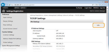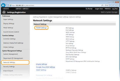 Selecting settings from the operation panelDNS settings can also be accessed from <Menu> in the Home screen. IPv4 Settings IPv6 Settings