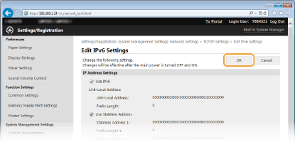 The [Use IPv6] check box must be selected to configure the settings. Setting IPv6 Addresses