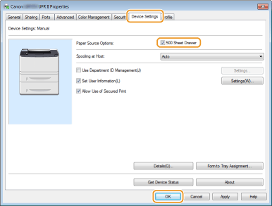 Select the [500 Sheet Drawer] check box