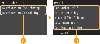 ![]() <Print Job Status>Displays a list of the documents that are being processed or are waiting to be processed.