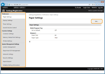 Some settings can only be changed when you have logged on in System Manager Mode.