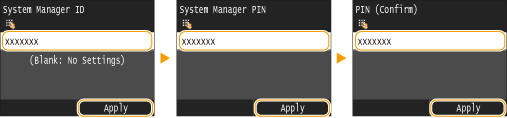![]() The factory default settings of the System Management ID and PIN are both "7654321." Note that it is not preferable to use these values as they are, from the viewpoint of security. It is recommended that you change the values by using the following procedure.