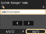 Enter up to 32 characters for the System Manager Name, and tap <Apply>. Entering Text