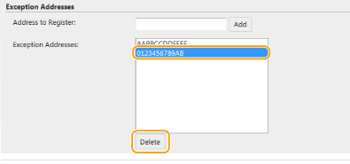 Enter the MAC address in the [Address to Register] text box and click [Add].