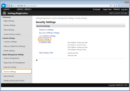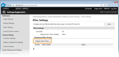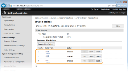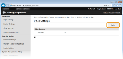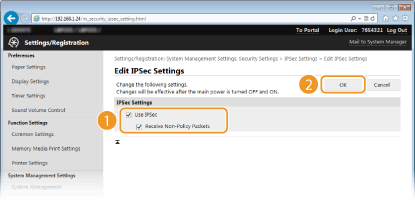 Using the operation panelYou can also enable or disable IPSec communication from <Menu> in the Home screen. Use IPSec