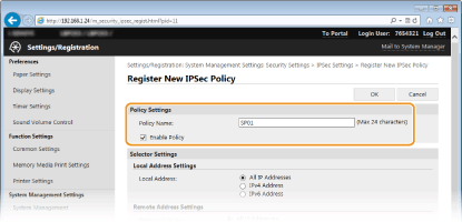 In the [Policy Name] text box, enter up to 24 alphanumeric characters for a name that is used for identifying the policy.