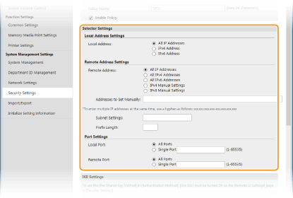 Select to specify a single IPv4 address or a range of IPv4 addresses to apply IPSec. Enter the IPv4 address (or the range) in the [Addresses to Set Manually] text box.