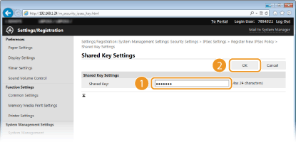 Enter up to 24 alphanumeric characters for the pre-shared key and click [OK].