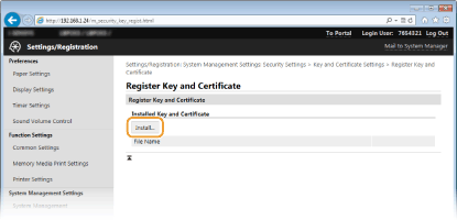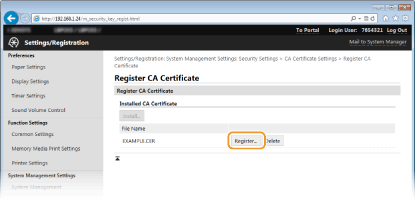 Click [Register Key and Certificate] or [Register CA Certificate].