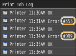 If printing is not successful due to an error, the print log screen displays an error code consisting of three digits. Check the following to find out causes and solutions for each error code.