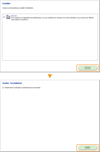 Désélectionnez toutes les cases à cocher, sauf [Manuels] et cliquez sur [Installer].