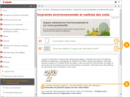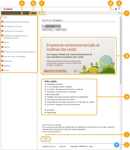 Cliquez pour régler les paramètres afin de déterminer comment le Manuel électronique est affiché, comme la taille de caractère ou la disposition.