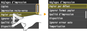 Vous pouvez modifier un grand nombre de réglages relatifs à l'affichage tels que la vitesse de défilement ou la langue d'affichage. Pour en savoir plus à ce sujet :