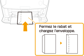 Chargez les enveloppes de manière à ce que le rabat soit vers la gauche de l'appareil comme illustré.