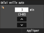 Définissez le délai écoulé avant que l'appareil ne passe automatiquement en mode veille