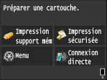 Définition du moment auquel doit s'afficher ce messageVous pouvez régler n'importe quelle valeur sous forme de pourcentage de la quantité d'encre restante dans la cartouche de toner et qui déclenche l'apparition de ce message. Aff. heures pr notification de préparation de la cartouche