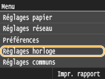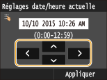 Définissez <Fuseau horaire> avant de définir la date et l'heure courantes. Si le réglage <Fuseau horaire> est modifié, la date et l'heure actuelles refléteront cette modification.