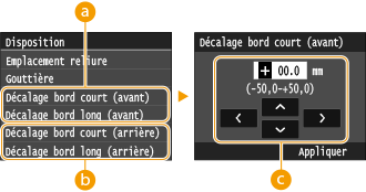 <Décalage bord court (avant)>/<Décalage bord long (avant)>