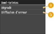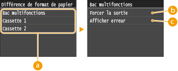 ![]() Disponibilité des paramètresLes paramètres d'impression décrits dans cette section, à l'exception de <Ignorer format papier> (Ignorer format papier), ne sont disponibles que pour l'impression en PS ou PCL. La définition de ces paramètres est superflue, par exemple, si vous utilisez le pilote d'imprimante UFR II.