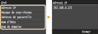 L'adresse IP n'est pas correctement configurée si "0.0.0.0" s'affiche.