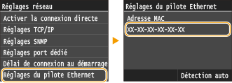 <Infos. Connex.> puis sélectionnez le réglage à afficher.