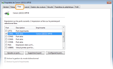 Cliquez sur [Configurer le port].