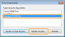 Sélectionnez [Port TCP/IP standard], dans [Types de ports disponibles], puis cliquez sur [Ajouter un port].