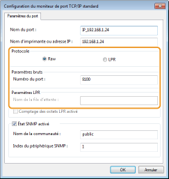 Si vous avez sélectionné [Raw], modifiez [Numéro de port].