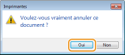Annulation à partir d'une applicationDans certaines applications, un écran similaire à celui qui est représenté ci-dessous apparaît. Vous pouvez annuler l'impression en cliquant sur [Annuler].