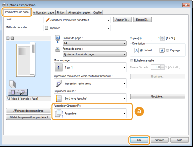 Lorsque vous imprimez des copies d'un document de plusieurs pages, sélectionnez [Assembler] pour imprimer le document entier dans l'ordre des pages. Cette fonction est très utile pour préparer des documents à distribuer pour les réunions ou présentations.