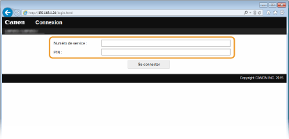 Tapez l'ID qui convient dans [Numéro de service] et le PIN dans [PIN] (