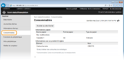 Lorsque [Accéder au site d'achat] n'est pas affichéSur le panneau de commande, configurez <Afficher le bouton d'achat de consommables (IU distante)> sur <Activé>.