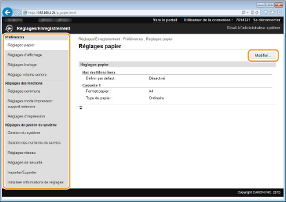 Vous ne pouvez modifier certains réglages que si vous êtes connecté en tant qu'administrateur système.