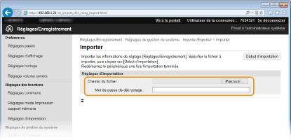 Saisissez le mot de passe configuré lors de l'exportation des paramètres.