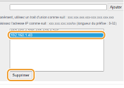 Sélectionnez une adresse IP, puis cliquez sur [Supprimer].