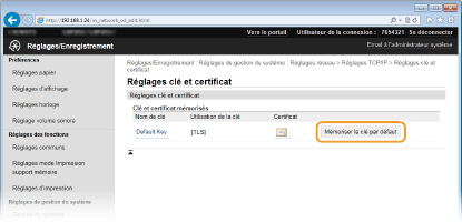 Cliquez sur [Mémoriser la clé par défaut] à droite de la paire de clés à utiliser.
