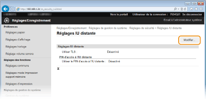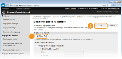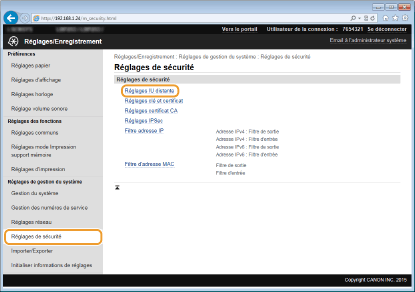 Cliquez sur [Réglages de sécurité]  [Réglages IU distante].