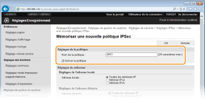 Pour identifier la politique, saisissez un nom composé de 24 caractères alphanumériques maximum dans la zone de texte [Nom de la politique].