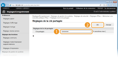 Saisissez une clé pré-partagée composée de 24 caractères alphanumériques maximum et cliquez sur [OK].