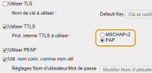 Vous pouvez sélectionner MSCHAPv2 ou PAP. Si vous souhaitez utiliser PAP, cliquez sur la case d'options [PAP].