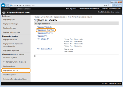 [Réglages de certificat]