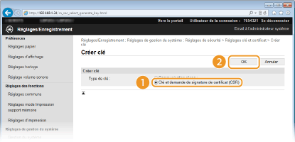 Sélectionnez [Clé et demande de signature de certificat (CSR)] et cliquez sur [OK].