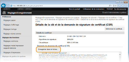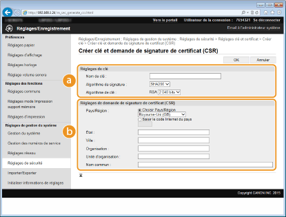 [Réglages de demande de signature de certificat (CSR)]