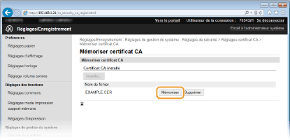 Cliquez sur [Mémoriser clé et certificat] ou [Mémoriser certificat CA].
