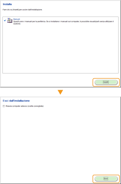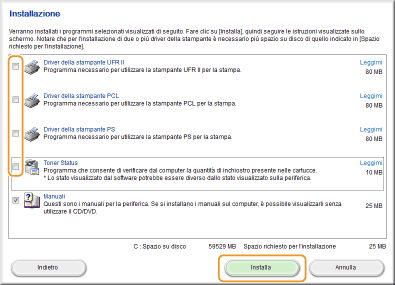 Deselezionare tutte le caselle di controllo tranne [Manuali], quindi fare clic su [Installa].