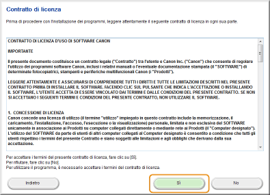 Leggere l'Accordo di licenza e fare clic su [Yes] per accettare.