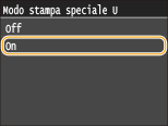 Quando si imposta questa opzione a <On>, la qualità di stampa può essere inferiore in base al tipo di carta o al sistema operativo (più specificatamente quando si stampa su carta sottile o si usa la macchina in un ambiente ad elevata umidità).