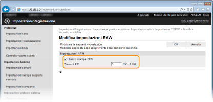 Selezionare la casella di controllo per stampare con RAW. Quando non si utilizza la stampa RAW, deselezionare la casella di controllo. [Timeout RX]