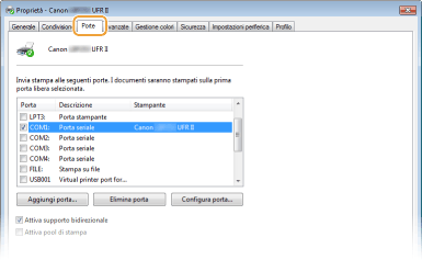 Il [Nome porta] viene inserito automaticamente. Se necessario, è possibile modificarlo.